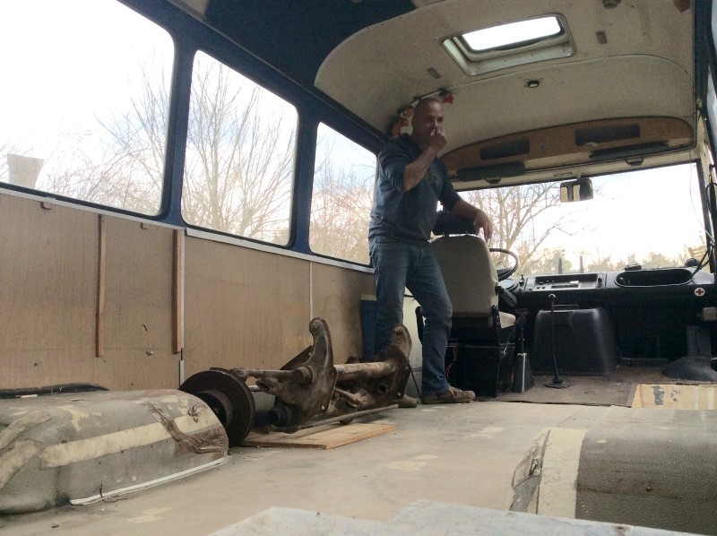 Die unteren Blechkanten der Türen sind schon zusammengefault. Die schwachsinnige Schaumstoffdämmung ist mit Wasser vollgesogen oder diente bereits als Mausenestfüllung. Wer fährt schon mit solch einem Auto in den Winterurlaub. Ich brauche ein Reisemobil für den Süden... Oder eins mit Holzofen, dann kann es ruhig auch ein wenig kälter werden. Ich entscheide mich dafür weiter zu machen...