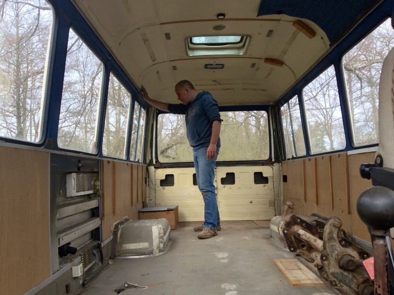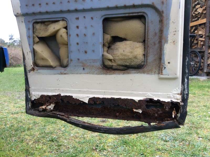 Die unteren Blechkanten der Türen sind schon zusammengefault. Die schwachsinnige Schaumstoffdämmung ist mit Wasser vollgesogen oder diente bereits als Mausenestfüllung. Wer fährt schon mit solch einem Auto in den Winterurlaub. Ich brauche ein Reisemobil für den Süden... Oder eins mit Holzofen, dann kann es ruhig auch ein wenig kälter werden. Ich entscheide mich dafür weiter zu machen...