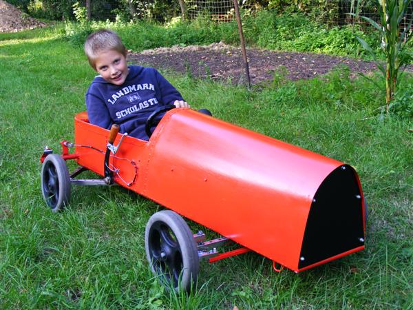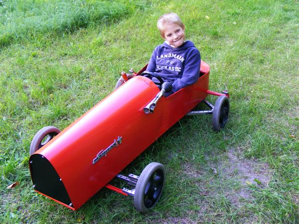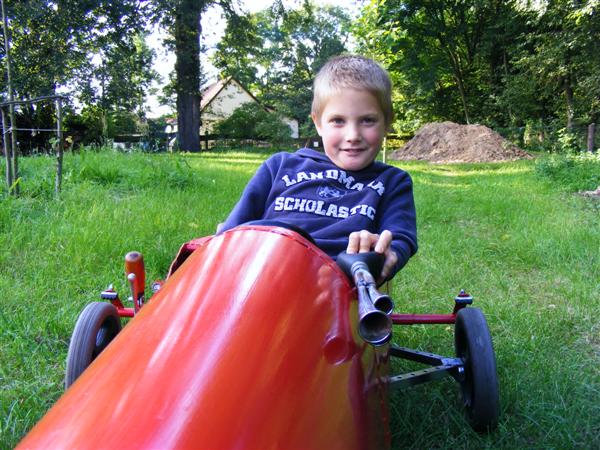 Tolle Idee der freiwilligen Feuerwehr ein Seifenkistenrennen hier im Ort zu veranstalten. Wir haben spontan sofort und verbindlich zugesagt und dann in den Sommerferien eine Seifenkiste zusammengebaut. Die sollte natürlich für einen schmalen Taler zu haben sein - frei nach dem Motto: "Einfälle statt Abfälle". Bei Bekannten und Verwandten haben wir herumgefragt und einiges an Material für den Bau geschenkt bekommen. An alle hier nochmal herzlichen Dank! Weil Metall billiger ist, als Holz aus dem Baumarkt, haben wir uns für den Bau einer Metallkarosserie entschieden. Metall, so fanden wir, lässt sich einfacher verarbeiten als Holz und ist im Gegensatz zu Holzkonstruktionen auf den frostgeschädigten Strassen rüttelresistenter...