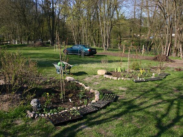 Im Frühjahr war noch alles kahl. Das von der Treuhand erworbene Grundstück wurde eingezäunt, dann war die Pflanzsaison eröffnet. Tage, Wochen und Monate verbrachte Katrin damit Erde auszutauschen und neue Pflanzen zu setzen.