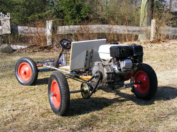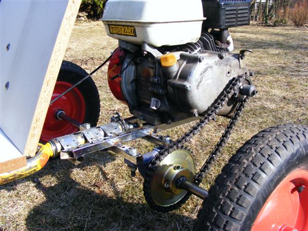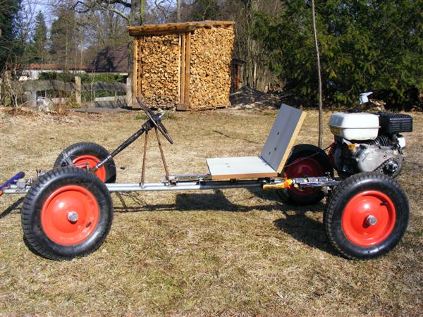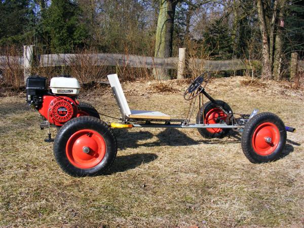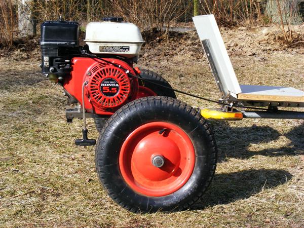 Kraftvoller Motor: Honda GX 160 mit 5,5 PS. Die Kraft wird völlig ungleichmässig auf genau ein Rad übertragen. Das heisst dann öfters Reifen wechseln...