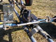 Ölbadrutschkupplung und abnehmbares Kettenblatt. Links die gelbe Fahrradgabel: hierdurch kann das hintere Fahrzeugteil vom vorderen Fahrzeugteil getrennt werden. Ausserdem ist das hintere Fahrzeugteil so gegenüber dem vorderen Fahrzeugteil verschränkbar. Dadurch haben immer alle 4 Räder Bodenkontakt...