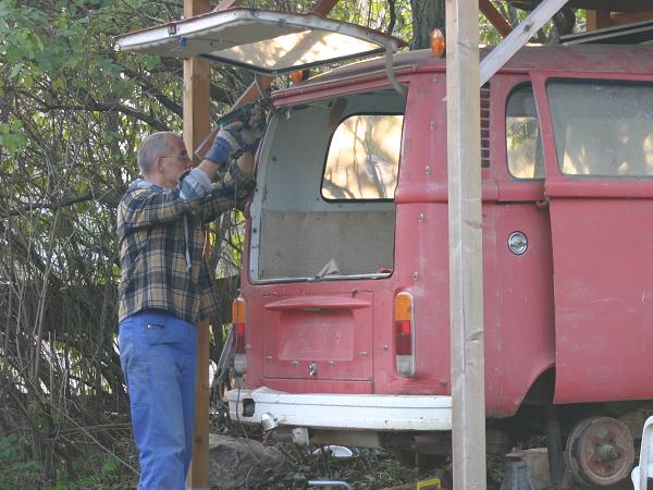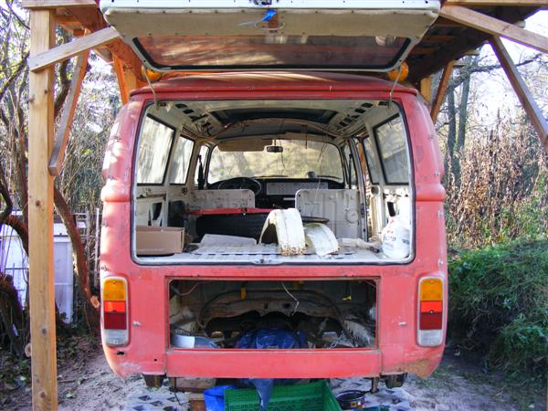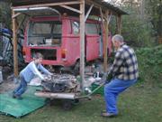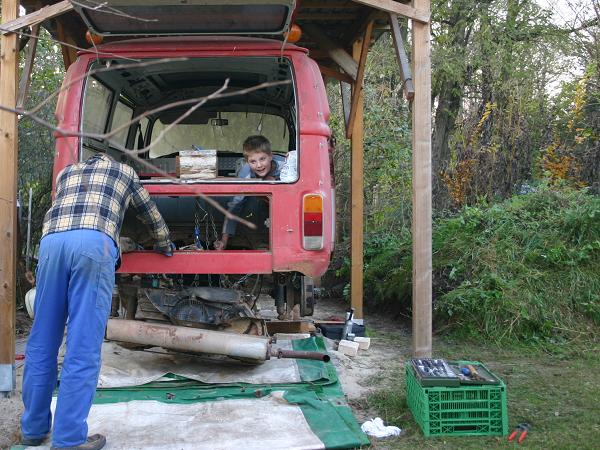 Wieviel Leben hat ein Bulli eigentlich? Eine Katze hat angeblich sieben Leben. Dieser Bulli steht jedenfalls auf der Schwelle zur dritten Wiedergeburt, so ist es jedenfalls geplant. Aber vor der kompletten Restaurierung wird diesmal auch der Motor ausgebaut - schliesslich habe ich das ja in La Paz auch gelernt. Wagenheber, Kettenzug und Holzkeile. Elias hilft kräftig mit und nach ein paar Stunden ist der Motor von der Karosse getrennt. Jetzt kann im Winter schon ein bischen daran gearbeitet werden...