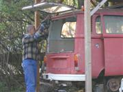 Eingewachsen und fast in Vergessenheit geraten. Im tiefen Dornrösschenschlaf hinter dichtem Flieder. Welch ein trauriger Anblick! Der Sommer ist vorbei und morgens liegt bereits der weisse, kalte Hauch des Winters über den Wiesen. Aber noch sind die Tage sonnig, mittags sogar noch warm und es naht Rettung - ein Hobbybastler mit seiner Kettensäge. Nach dreistündigem Kampf ist der Bulli endlich befreit. Und so wird aus dem Ende einer Geschichte vielleicht der Anfang einer neuen Geschichte...