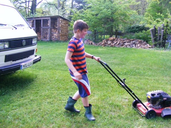 Glücklicherweise hat Elias riesigen Spass beim Rasenmähen. So kann ich mich um das Auto kümmern und der Rasen wird auch noch vor dem ersten Ausritt gepflegt. Ist Elias nicht schon gross geworden? Wahnsinn wie die Zeit vegeht...