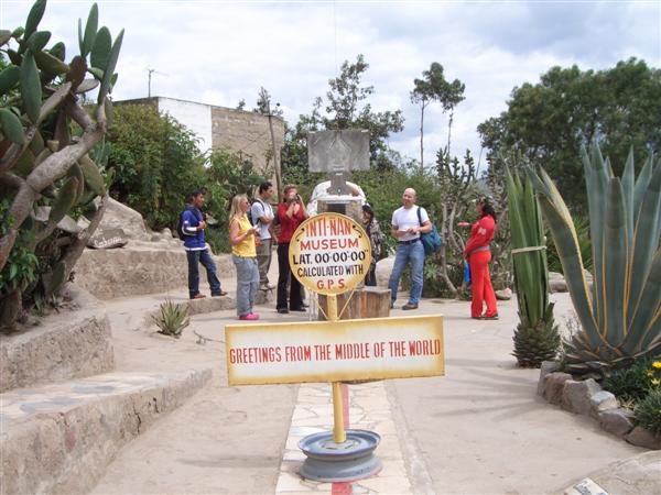 Aber ein paar `zig Meter weiter gibt es das wirkliche Äquatormuseum. Ohne viel Pomp und Monument und für wenig Eintritt. Aber hier werden viele Experimente gezeigt. Rechts und links von der Äquatorlinie läuft das Wasser mit unterschiedlich drehenden Strudeln aus einem Gefäss. Und genau auf der Äquatorlinie bildet sich beim Auslaufen kein Strudel. Hier lässt sich auch ein Ei auf eine Nagelspitze stellen - wenn man nicht gerade an Parkinson leidet.