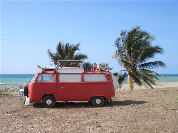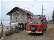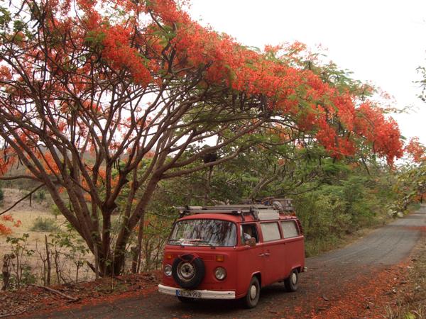 Vorbei an rot blühenden Bäumen geht es Richtung Pedernales. Hier am Äquator verbringen wir Sylvester. Ein Strand mit einem kleinen Campingplatz (eher selten in Ecuador) und einem Restaurant. Über Sylvester sind hier ausser uns gerade einmal 10 Menschen. Die Sonne sengt mit 40 Grad vom wolkenlosen Himmel. Es ist fast windstill und so sind es Nachts noch 30 Grad im Bus - nicht gerade ideal zum schlafen.
