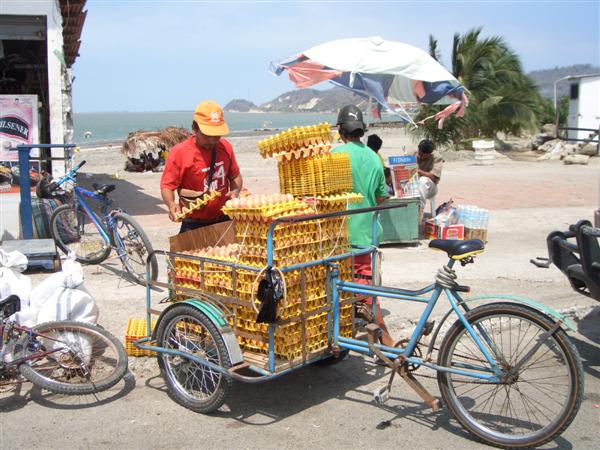 Wir verlassen kurzzeitig Canoa und fahren die Küste weiter Richtung Norden. Sylvester wollen wir lieber an einem ruhigen Strand verbringen. In Jama kaufen wir das nötige Essen und Wasser ein. Jama ist auffällig hübsch verglichen mit den anderen Orten an der Küste von Ecuador. Auf den Strassen fast kein Verkehr.