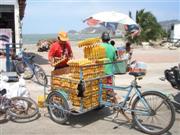 Trotzdem findet man noch sehr kleine Orte zu denen die Teerstrasse noch nicht vorgedrungen ist. Hier werden die Häuser noch komplett aus Bambus gebaut - nur die Dächer sind aus Blech und nicht mehr aus Bananenblättern. Schweine und Hühner laufen frei herum. Gegessen wird aber hauptsächlich alles was das Meer hergibt. Und das ist reichlich: Krabben, Krebse, Muscheln, Langusten und jeglicher Fisch. Aus dem Meer fast direkt auf den Teller für `nen Appel und ein Ei.