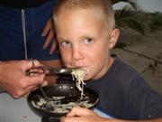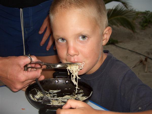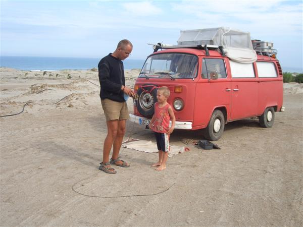 Wir feiern den Geburtstag von Elias noch am Strand. Auf dem Feuer wird ein Streusselkuchen mit Smarties gebacken und es gibt ein paar kleine Geschenke. Ein paar Peruaner mit ihren Kindern sind an diesem Tag auch am Strand. Elias hat von den Peruanern schon das Spucken gelernt (das müssen wir ihm schnell wieder abgewöhnen!). Hier spucken die Männer ständig in die Gegend. Nicht das man gerade in unseren Bus spuckt, aber sonst fast überall hin. Wiederlich! Kaum zu glauben, dass dieses vor nicht allzu langer Zeit auch in unseren Gefilden noch üblich war.