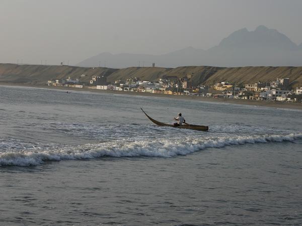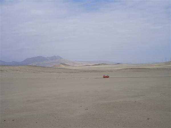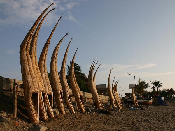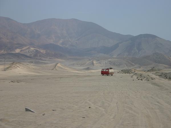 Nach ein paar Tagen haben wir genug vom Strand und der Sonne. Für die nächsten Monate ist Schluss mit dem Baden im Meer. Nun geht es vollepulle durch die Küstenwüste von Peru. Es ist trocken und heiss und es geht durch unzählige uninteressante und erbärmlich stinkende Städte. Erst in Huanchaco gibt es wieder einen schönen Standplatz. Empfehlenswert ist auch der kleine Markt von Huanchaco. Sehr gute und frische Qualität: ein Kilogramm Haifischsteak inklusive Gemüse und Kartoffeln und Salat fuer etwa 3 Euro 50. Was kostet das eigentlich mittlerweile in Deutschland?
