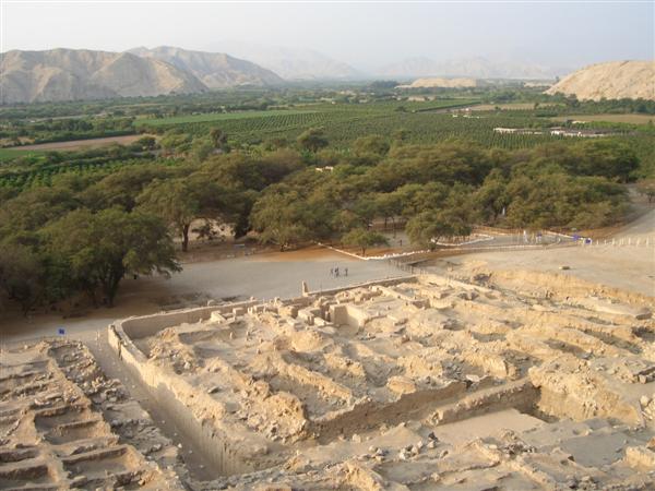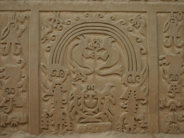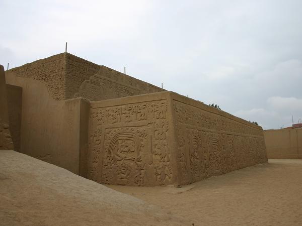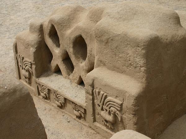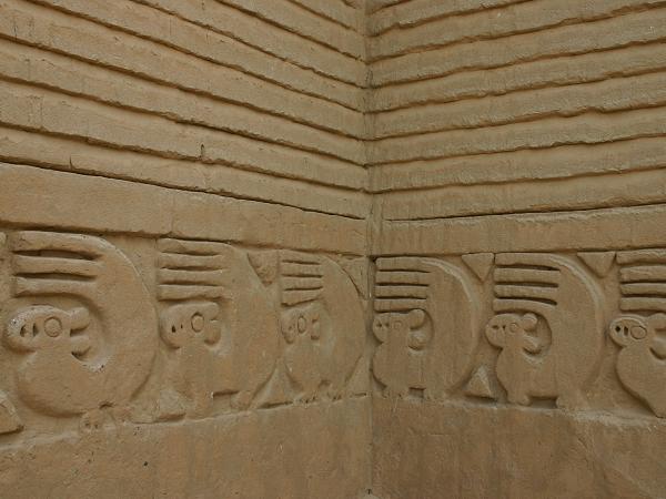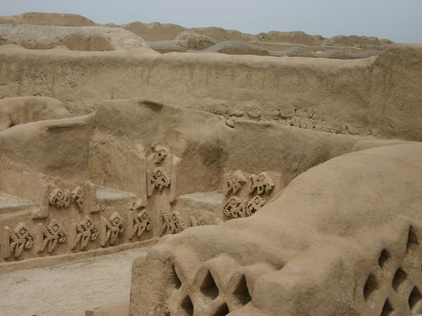 In Huanchaco besuchen wir den Ruinenkomplex von Chan Chan. Es war die Hauptstadt des ehemaligen Chimu-Reiches, einer präkolumbischen Kultur. Sie entstand etwa um 1300 nach Christus und erstreckt sich noch heute über eine Fläche von 28 Quadratkilometer. Sie war wahrscheinlich die grösste Stadt der damaligen Zeit auf dem südamerikanischen Kontinent und eine der grössten der Welt, die aus Adobe-Bauten errichtet wurde. Zu ihrer Hochblüte beherbergte die Stadt etwa 60.000 Einwohner und hatte ein ansehnliches Vermögen an Gold, Silber und keramischen Kunstgegenständen angehäuft. Zur massiven Zerstörung trägt auch der in den letzten Jahren auftretende El Nino bei. Jahrzehntelang fiel in dieser Gegend kein Regen, aber durch die Klimaänderung wird der Wind immer heftiger und verändert die wüstenähnlichen Küstengebiete. Starke Regenfälle habe die Mauern errodiert.