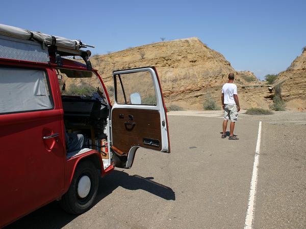 Der Rest der Strecke bis Nazca ist so uninteressant, das wir eine lange Nachtfahrt einlegen. Schliesslich haben wir diesen Teil der Strecke bei unserer Fahrt nach Ecuador schon gesehen. Lang, staubig, heiss und trocken. Elias schläft hinten im Bett und wir können ungestört Kilometer schrubben. Im Morgengrauen erreichen wir Nazca wo wir einen tollen Campingplatz (Hotel Nido del Condor) mit - na was schon? - mit Pool kennen :-) Zeit für eine kleine Pause...