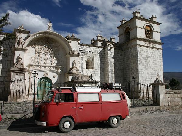 Arequipa liegt auf etwa 2300 Höhenmeter. Von hier geht es wieder hoch in die Anden. Die ersten zwei Tage fahren wir nur wenige Kilometer, um uns langsam an die Höhe zu gewöhnen. Dennoch war es etwas zu schnell. Die zweite Nacht verbringen wir im Altiplano auf 4100 Metern Höhe. Steppe und ein paar grasende Vicunas. Nach der lauten Stadt müssen wir uns erst wieder an die absolute Stille gewöhnen. In der Nacht ist es eisekalt, aber wir sehen einen tollen Sternenhimmel. wir brauchen Mützen beim Schlafen, unser Trinkwasser friert ein und der nächste Tag beginnt mit Kopfschmerzen. Nur Elias ist fit, ihm scheint die Höhe nichts auszumachen. Der Bus springt trotz der eisigen Kälte sehr gut an - die Motorinspektion in Arequipa hat sich gelohnt. Nach weiteren 810 Höhenmetern ist der Patapampa-Pass erreicht - diesmal nicht im Schneckentempo...