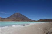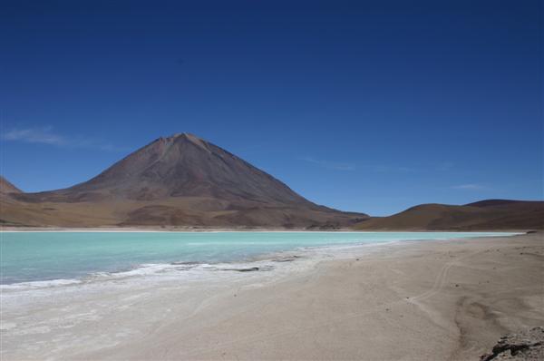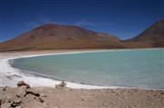 4 Ortschaften und 370 Kilometer hinter Uyuni, kurz vor der chilenischen Grenze erreichen wir unser Ziel - die Laguna Verde. Im See ein hoher Gehalt an Blei, Cadmium und Schwefel. Das im See enthaltene pflanzliche Plankton färbt sich gegen die Mittagszeit grün. Das würde uns nicht anders gehen. Ein tolles Naturschauspiel. Morgens früh ist der See tatsächlich noch glasklar, mittags dagegen grün.