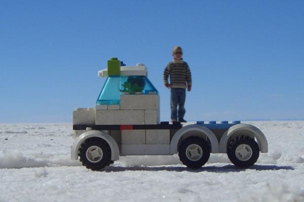 In Uyuni dann ein kurzer Stop. Dummerweise hatten wir Klopapier vergessen und ausserdem füllen wir die Tanks noch einmal auf. Die Nacht verbringen wir auf einem alten Eisenbahnfriedhof ganz in der Nähe. Hier stehen einige der grössten Dampflokomotiven der Welt und rosten vor sich hin. Ein toller Spielplatz für Elias. Wir finden eine einzelne freirollende Antriebsachse mit der wir zur Freude von Elias Blechdosen zerquetschen und Steine pulverisieren.