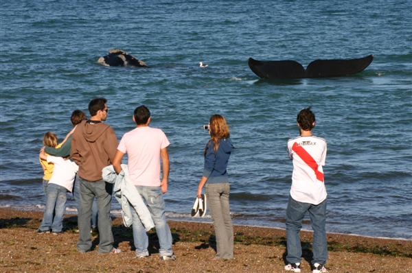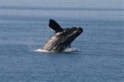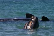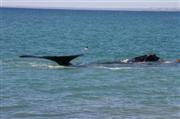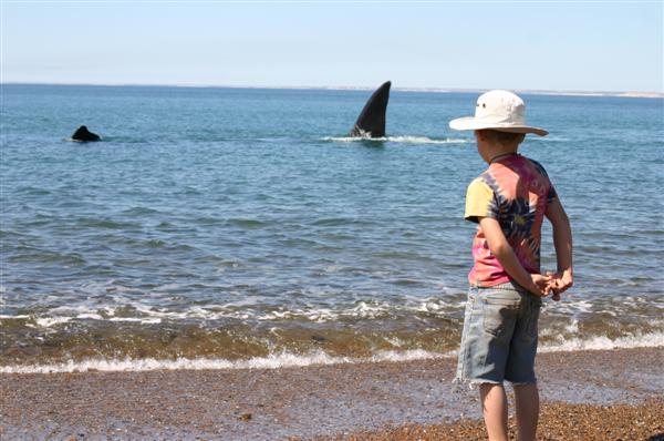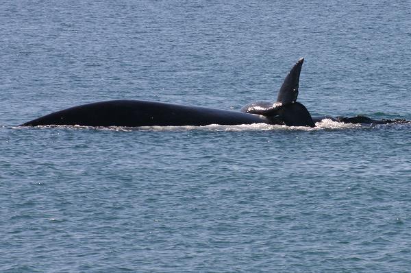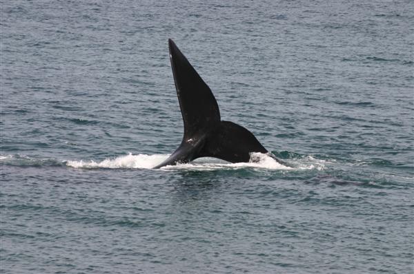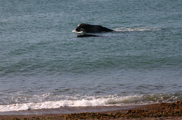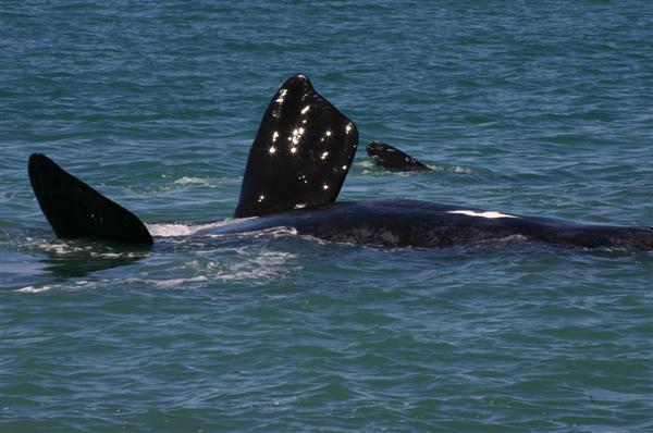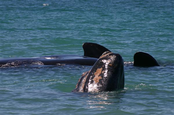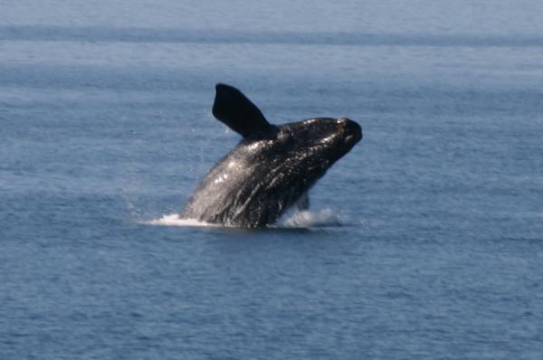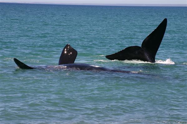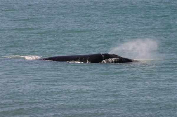 Wie U-Boote tauchen sie immer wieder aus dem Nichts auf und blasen fauchend aus. Schwanzflossen, so breit wie unser Bus lang ist, werden zur Kühlung minutenlang aus dem Wasser gehalten. Muttertiere schwimmen mit ihren Kälbern auf und ab. Manchmal tauchen sie ab, heben ihre Jungen hoch, damit diese wieder ins Wasser rutschen können. Wir parken unser "Wallokal" direkt am Strand und können während den Malzeiten aus dem Fenster zuschauen. Immer wieder springen diese, bis zu 35 Tonnen schweren, Tiere aus dem Wasser und krachen mit einem lauten Knall zurück.