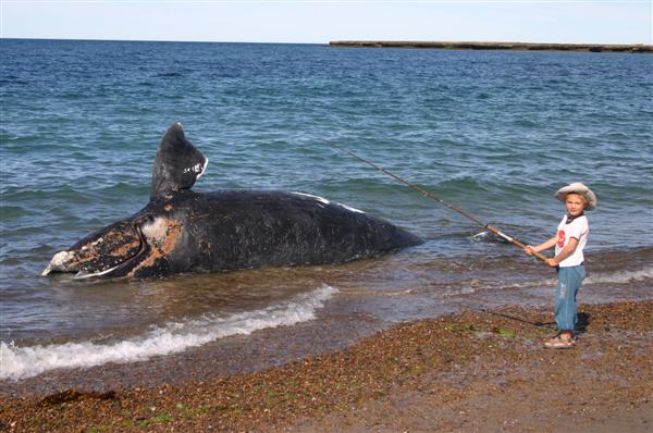 Eines Morgens weckt uns Elias aufgeregt. Unbemerkt hat sich dieser Schlingel die Angel geschnappt und noch dazu einen Wal an Land gezogen - so behauptet er jedenfalls. Tatsächlich, das Ding lag am Strand.
