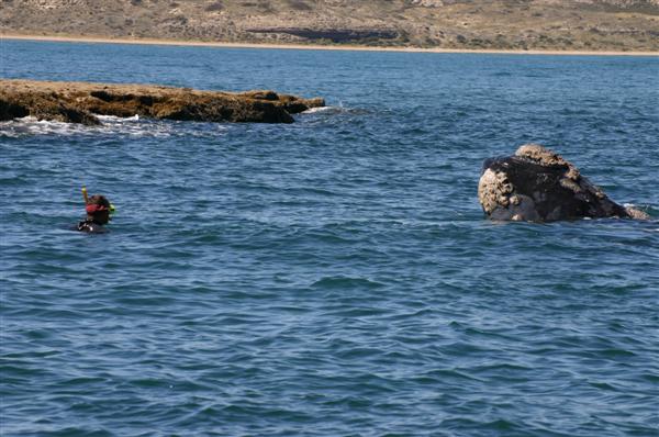 Die ersten Wale direkt von der Strandpromenade aus zu sehen beeindruckt uns schon sehr. Irgendwo zwischen Ufen und Horizont die Fontäne eines ausblasenden Wals. Sie sind da, diesmal haben wir Glück. Schnell machen wir noch einen Grosseinkauf, bunkern Wasser und ab gehts zum Playa Doradillo, etwa 15 Kilometer auserhalb der Stadt. Hier kommen wir aus dem Staunen nicht mehr heraus - die Wale schwimmen wirklich wenige Meter vom Ufer entfernt entlang.