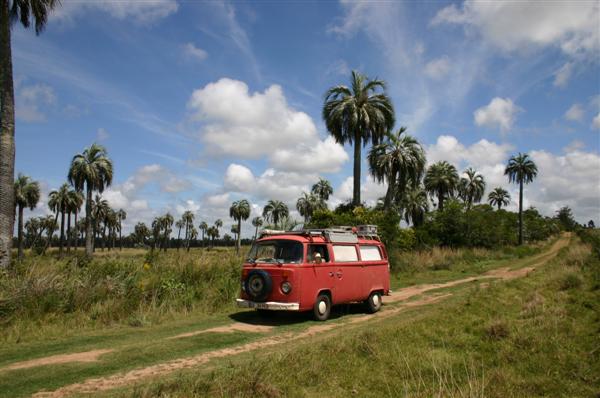 Eine Bank in Norduruguay zu finden, ist dann mindestens genauso nervenaufreibend wie die Einreise - zumindestens in unserem Fall. Uruguay ist etwa halb so gross wie Deutschland, in Uruguay leben aber nur um die drei Millionen Einwohner. Dementsprechend leer sind die Städte und dementsprechend leer sind auch die Bankomaten. Findet man einen am Wochenende und hat die umständliche Menüführung endlich kapiert, bekommt man auf dem Display die höfliche Antwort "Versuchen sie es mit einem niedrigeren Betrag" zu lesen. Das kann dann sehr lange so gehen, bis man endlich umgerechnet 50 Euro in der Hand hält, die Finger blutig sind und man vier Euro fünfunddreissig Gebühren bezahlt hat. Zum Glück haben wir noch argentinische Peso und können uns so an einer Wechselstube mit etwas mehr Bargeld eindecken. Unweit der Stadt lassen wir den Tag am Steilufer über dem Rio Uruguay mit Blick auf Argentinien und der Frage "Was machen wir hier eigentlich?" ausklingen...