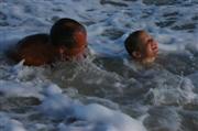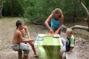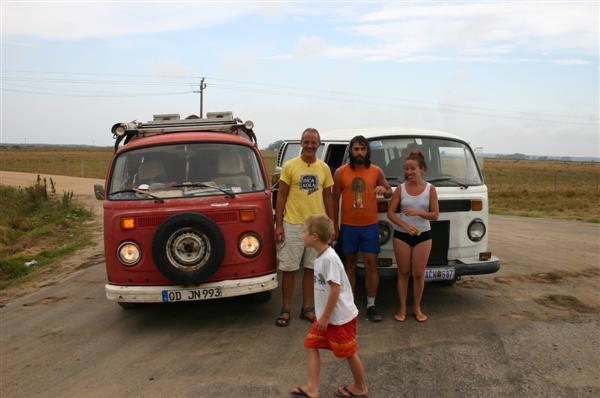 "Der Bus macht Pipi" lacht uns Elias entgegen. Tatsache! Das Wasser läuft an der Wagenheberaufnahme aus dem Bus, obwohl es gar nicht so viel geregnet hat. Schnell wird klar, der Brauchwassertank hat sich unbemerkt selbst durch den Schlauch entleert. Der Physiker nennt den Effekt "kommunizierende Röhren", der Wohnmobilist schlicht "Mist". Die Gepäckfächer stehen unter Wasser, "Schwarzfahrer" verlassen den Raum zwischen Bodenblech und Fussbodenbelag und krabbeln ins Freie. Wenigstens sind wir die los, aber es dauert lange bis der Bus wieder trocken ist.