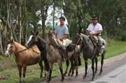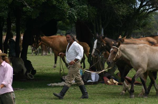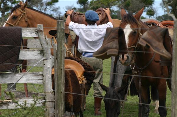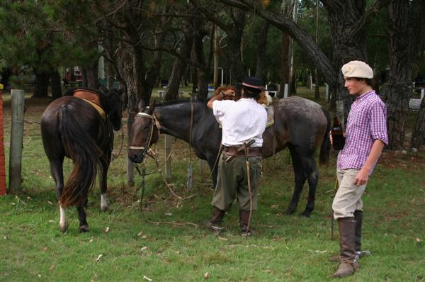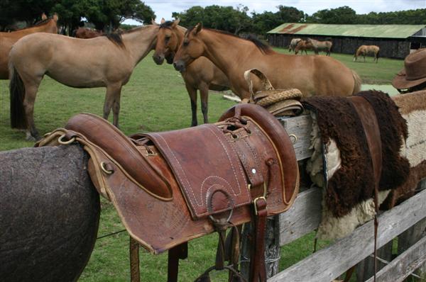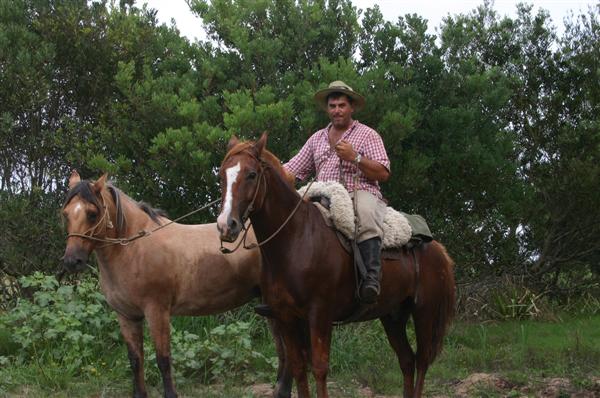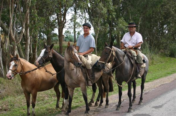 Wir verbringen ein paar Tage auf einem Campingplatz unweit des Strandes. Und zufällig können wir einen Ausritt von Gauchos beobachten. Ganz wie aus dem Bilderbuch: ein Fell als Sattel, einfache aber traditionelle Kleidung und das Ersatzpferd immer dabei...